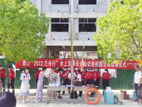 为进一步普及水上交通安全知识,增强校园师生水上交通安全意识,提升小学生防溺水安全教育的针对性、实效性,防止学生溺水事故的发生,6月20日上午,周口市港航管理局与市六一路小学共同开展“兰舟行”水上交通安全知识进校园活动。图为市港航管理局工作人员为学生讲解水上应急措施、防溺水知识、水上救生常识等。 记者 李硕 摄