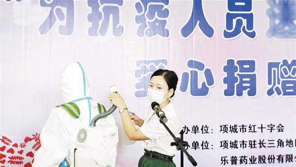 本报讯 (记者 张志新 文/图) 6月21日上午,项城市红十字会举行“为抗疫人员送一夏清凉”爱心捐赠仪式,向项城市疫情防控指挥部一次性捐赠180套便携式空调防护服,助力解决医护人员高温天气下作业问题,全力支持抗疫工作。