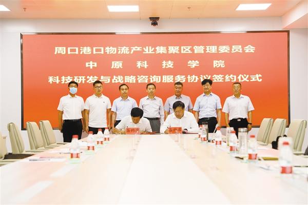 本报讯 (记者 宋风 文/图) 邀请高校专家,对周口港区临港经济发展提供咨询服务。6月15日,周口港区与中原科技学院签订科技研发与战略咨询服务协议(如图),通过双方合作,推动临港经济高质量发展。