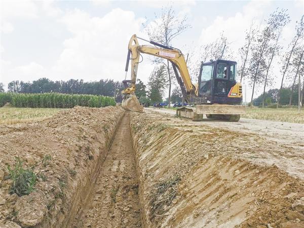 当日,在郭小庄自然村一沟渠前,镇村干部组织群众清理沟渠和坑塘,几台大型挖掘机正在作业(如图)。“这些沟渠都堵塞多年了,旱不能浇、涝不能排,且存在一定的安全隐患。”村民王学营说。