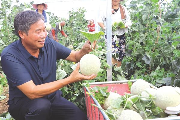 7月4日,鹿邑县鑫梦祥现代农业专业合作社的瓜棚里,瓜农正忙得不亦乐乎,收获成熟的蜜瓜。近年来,鹿邑县赵村乡胡山行政村大力发展特色产业,带领村民走上了甜蜜的致富路。