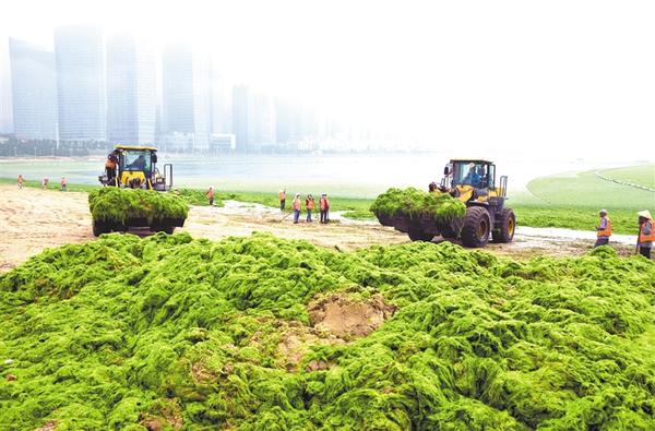 近期,随着海水温度逐渐升高,山东省青岛市海岸线的浒苔有所增加。当前,青岛市已启动“近岸海域浒苔应急处置”预案,积极组织市政、环卫、渔业等部门,通过“海上打捞、近岸阻拦、岸域清理”的方式进行处置。