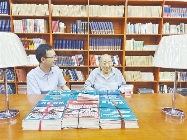 本报讯(记者 黄佳 文/图)7月5日上午,大雨滂沱,市图书馆迎来了一位特殊的客人——90岁的老人李晓岚,他将2万元现金和72册《炎黄春秋》捐赠给市图书馆。