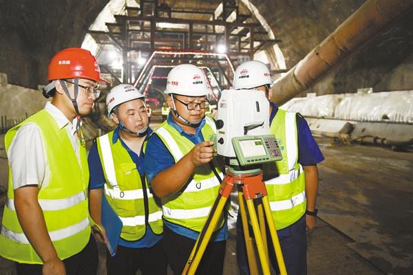 7月5日,技术人员在杭衢铁路天池山隧道内进行勘测。