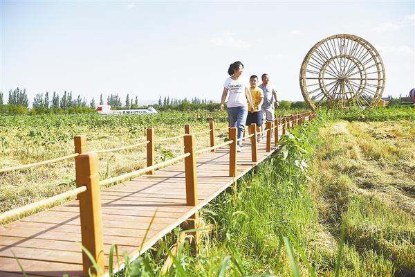 近年来,位于黄河岸边的宁夏青铜峡市大坝镇韦桥村依托引黄古灌区世界灌溉工程遗产和黄河水利、生态资源优势,发展农业观光、农事体验、农耕文化等产业,逐步走出一条村美业兴的农旅融合发展之路。 新华社发