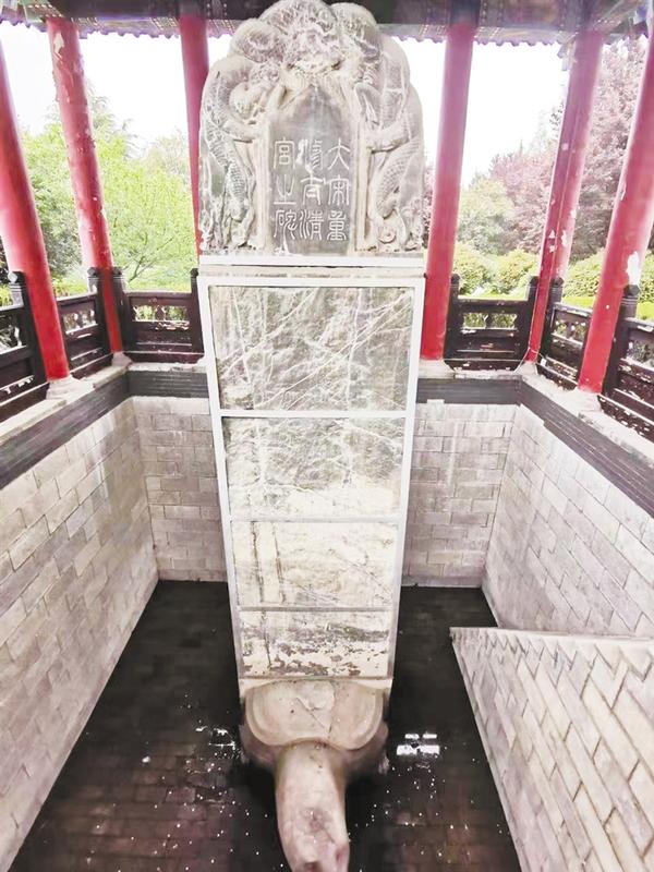 大宋重修太清宫之碑立于北宋大中祥符七年。由于年代久远和风雨的剥蚀,上面的碑文已经模糊了,但是碑首雕刻工艺精细,艺术水平很高。此碑用盘龙做碑首说明是皇家御制。碑文记载了宋真宗赵恒朝拜并重修太清宫的经过,重点记述了修复后太清宫宏大的规模和壮观的气势。由于这块石碑一直在原址的基础上,所以它下面的地基就是宋朝鹿邑的地基。因为鹿邑属于黄泛区,黄河历次泛滥时,造成地层淤积。最早汉朝的老子祠坍塌后就堆积在土层的最下面,唐朝的太清宫又在新的地层上重新建设。唐朝的基址被淤积后,宋朝又在它的上面新建了太清宫。