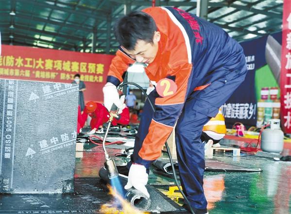 7月6日上午,2022年中国技能大赛——防水工职业技能竞赛项城赛区预赛、周口市建筑防水职业技能暨项城市“黄培栋杯”第六届防水工职业技能大赛在项城市三店镇防水产业园举行,来自全国各地防水行业的百余名选手同台竞技,展示技能风采。 记者 张志新 摄