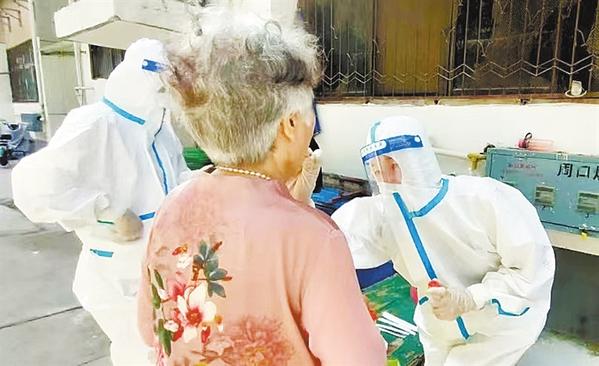 7月8日五点半,周口承悦糖尿病医院(河南科技职业大学第五附属医院)的核酸采集队伍迅速集合完毕,医务人员进社区、进校园、进居民家中,在社区工作人员和志愿者的帮助下,完成核酸采集15000人。记者 王珂 摄