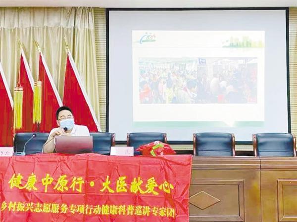 7月8日,周口市中医院脑病二病区主治医师、河南省健康科普专家库成员黎民受邀参加河南省2022年“健康中原行·大医献爱心”专项行动。活动中,黎民在尉氏县邢庄乡开展《慢性病健康素养》专题科普讲座。