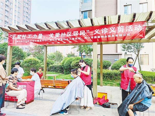 为更好地服务社区居民,传播“奉献、友爱、互助、进步”的志愿服务精神,7月14日上午,周口市三川社工义工服务中心、周口市俪婴妇女儿童医院、周口市嘉馨物业服务有限公司在中心城区景园社区举行“汇聚社工力量 关爱社区居民”义诊义剪活动。