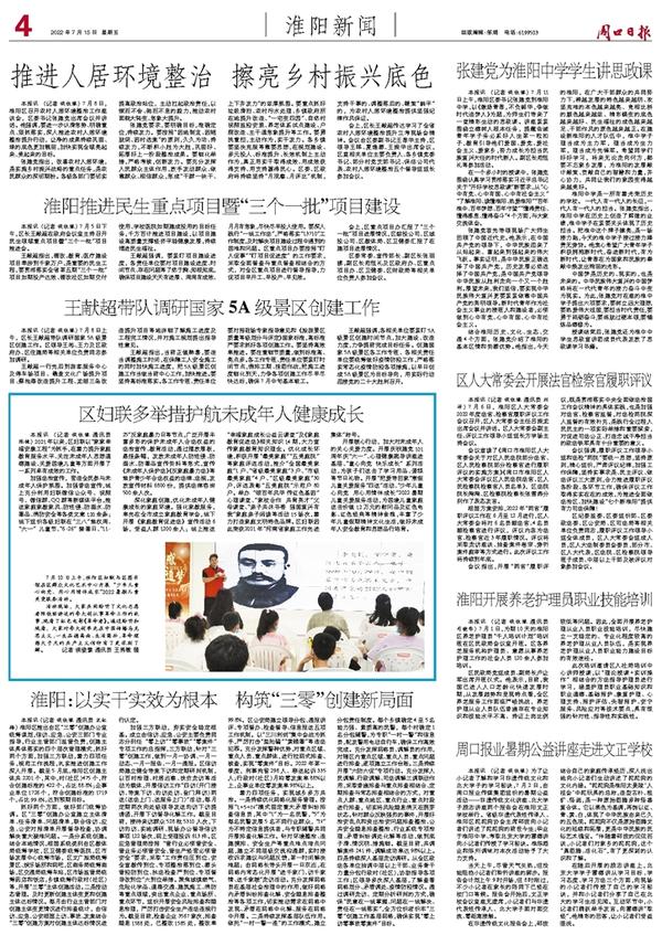 本报讯 (记者 侯俊豫) 7月8日,淮阳区召开农村人居环境整治工作座谈会,区委书记张建党出席会议并讲话。他强调,要进一步认清形势、明确重点、狠抓落实,深入推进农村人居环境整治提升行动,让净的成果持续巩固、绿的底色更加靓丽,加快实现全域亮起来、美起来的目标。