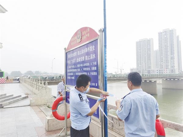 为深入预防少年儿童溺水事故的发生,切实增强广大人民群众的安全防范意识,近日,周口市公安局水上分局民警在周口城区投放30余根“救生竹竿”,进一步筑牢“安全屏障”。民警通过在河道两侧、桥梁旁边等群众经常聚集的地点悬挂防溺水横幅、张贴防溺水安全提示、投放救援专用“竹竿”,来警示嬉水者,同时预防发生意外溺水事故。 记者 陈永团 通讯员 李军帅 摄