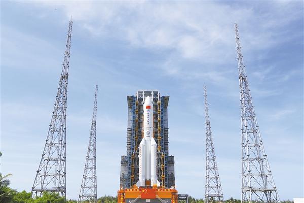7月18日,问天实验舱与长征五号B遥三运载火箭组合体转运至发射塔架。