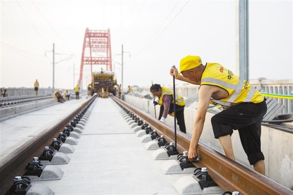 当日,轨道铺设顺利通过常(德)益(阳)长(沙)铁路控制性工程资水特大桥,为常益长铁路早日通车运营奠定基础。新华社记者 陈思汗 摄