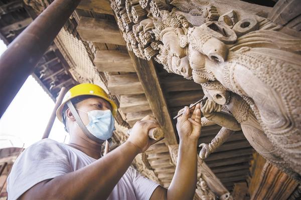 近日,在国家文物局的指导下,中国文化遗产研究院援助尼泊尔工作队经过近5年努力,圆满完成尼泊尔加德满都杜巴广场九层神庙建筑群文物本体维修。新华社发