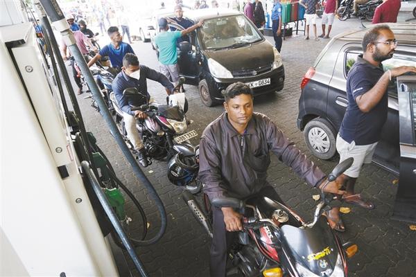 7月18日,在斯里兰卡首都科伦坡,人们排队等待加油。