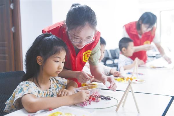 从7月中旬开始,浙江省杭州市临安区锦南街道辖区内的各党群服务中心(站)招募志愿者、热心老教师等,推出包括参观学习类、社会实践类、艺术兴趣类、亲子活动类等活动的社区暑期夏令营公益托管班,丰富孩子们的暑期生活,也为家长们解决了后顾之忧。新华社记者 徐昱 摄