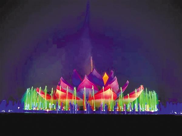 荷花景观池作为淮阳荷花苑提升改造项目的核心工程目前已经完工,增加了景观灯光、喷泉、喷雾等。音乐喷泉灯光秀已惊艳登场,莲花造型中的一股股水柱随着音乐律动,光波流转间不停变换色彩和造型,给观众奉上了一场集声光电于一体的视听盛宴。记者 侯俊豫 摄