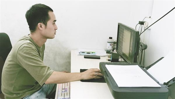 7月20日,雨后的空气更加清新,通往耿庄行政村的道路两边绿意盎然,翠绿的玉米叶在微风中不停地摇摆,仿佛在向人招手示意。按照导航指引,记者来到了位于耿庄行政村刘营自然村西头的一座院落前。此时,看到有车辆停在门前,一位年轻人走了出来,经过介绍,此人正是刘于谦。他个子不高,瘦瘦的身材,说话时还有些腼腆。客厅摆设虽然简陋,但是打理得井井有条。刘于谦的创作室在二楼的一个小房间内,房间内一张电脑桌、一台电脑和一台打印机,打印机上放着一些与演唱公司签订的歌词演唱协议。