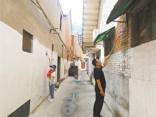 7月26日上午,七一路街道办事处组织社区工作人员、志愿者对小广告进行集中清理,持续推进“创文”工作。 记者 韩志刚 摄