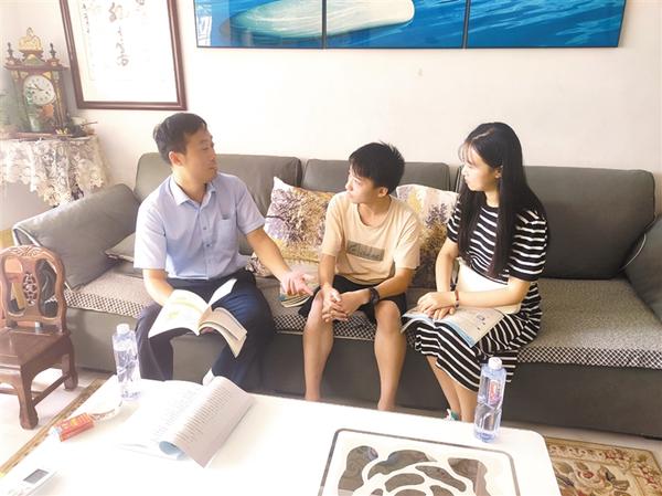 为进一步落实假期学生学习安排,反馈学生上学期在校表现,帮助家长和学生明确新学期努力方向,形成家校合力,暑假期间,我市部分学校开展家访活动,教师走进学生家庭,详细询问学生家庭情况和学习安排,并为学生的学习提出中肯建议。图为周口市文昌中学教师岳伟、蔡杭到学生李松瑞家指导其网课学习。