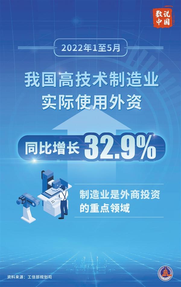 工信部规划司副司长姚珺7月26日表示,2022年1至5月,我国高技术制造业实际使用外资同比增长32.9%,制造业是外商投资的重点领域。新华社发 程硕 制图