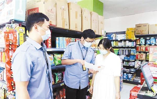 为进一步强化市场监管,针对夏季卷烟市场特点及规律,近日,沈丘县烟草专卖局对辖区重点区域开展错时夜查和普法宣传,切实提升零售户依法经营水平。图为工作人员对商户进行普法宣传。