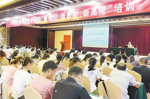本报讯 (记者 侯俊豫 通讯员 楚士杰 贾晗 文/图) 7月25日上午,由淮阳区教体局主办、淮阳中学承办的淮阳区高中教师“新课程·新教材·新高考”培训班分别在淮阳中学等地开班。区教体局副局长霍继涛、师训股股长马秀梅,淮阳中学党总支书记白子兴出席开班仪式。来自全区各个高中的相关一线教师参加培训(如图)。