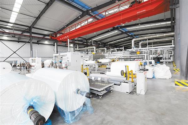 项目计划总投资10亿元,主要建设生产车间和研发中心、配套仓库、办公楼、分拨中心,购置安装4条环保可降解无纺布新材料生产线,年产无纺可降解高档纸巾5万吨。目前,项目主厂房建设完成,第一条和第二条生产线设备已安装完成,于6月中旬开始试生产。