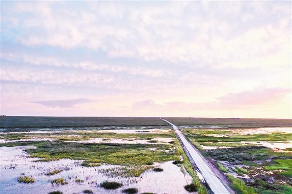 在内蒙古东乌珠穆沁旗拍摄的夕阳下的草原(7月27日摄,无人机照片)。