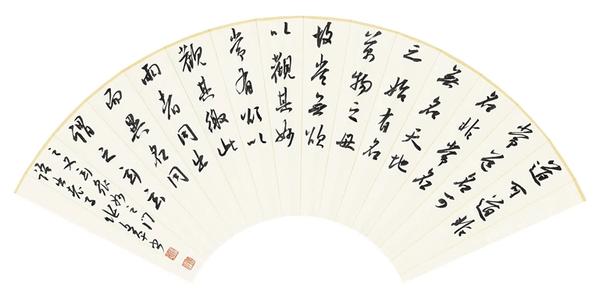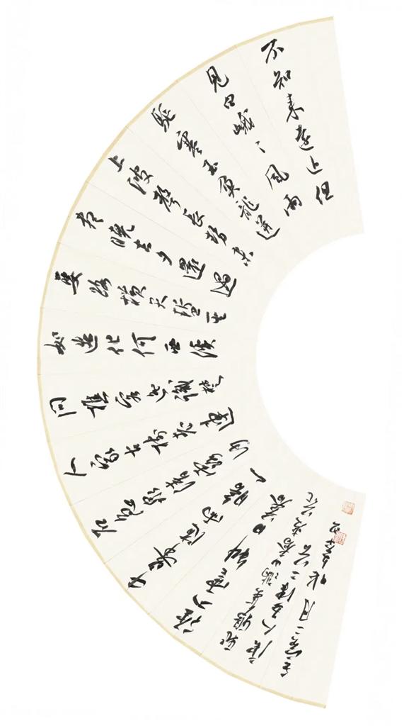 或是因为与老子诞生在同一片土地,长期受同一方水土滋养,虽相隔了两千五百多年,但文平先生仰承先哲智慧,技法意,意法道,道法自然,执了书法艺术的大象,在这条路上,走得意气风发、通透无碍。而这册扇面书法集取名《御风——张文平百幅扇面书法艺术》,无论是表达扇子的消暑送风,还是表达笔墨间狂放萧散的书风,抑或是道家所追求的御风而行的自由境界,都不如说是它给书法爱好者的生活,提供了一套新风系统,使文化的呈现更生态自然。
