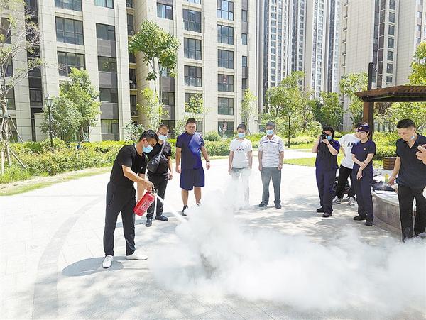 演练开始前,区消防救援大队消防宣传人员对辖区居民和物业人员进行消防知识培训,结合火灾案例向他们讲解了火灾常识、生活中存在的各类安全隐患,提醒大家正确用电用火,普及自防自救知识。随后,消防人员详细介绍了灭火器的种类和性能、消防栓快速连接及消防水枪使用等各项安全应急知识,并模拟火灾现场进行灭火演练。演练结束后,居民纷纷上前亲自体验灭火器的正确使用方法(如图),学到了更多的消防知识。