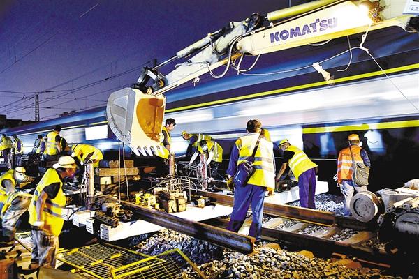 8月1日晚,由中铁十局承建的国家重点基建项目济(南)郑(州)高铁引入济南铁路枢纽工程的重要节点项目——大明湖站正式启动改造。改造完成后将实现济南西站、济南站、大明湖站至济南东站的互联互通,满足济郑高铁、京沪高铁、石济客专的跨线营运需求。新华社记者 郭绪雷 摄