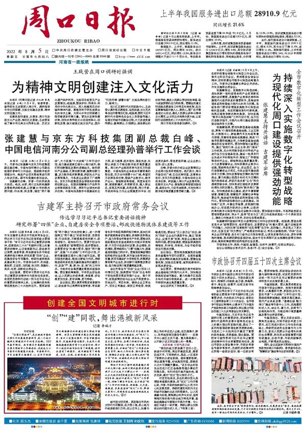 张建慧强调,要加快新型基础设施建设。聚焦5G通信网络基础设施、工业互联网、大数据中心、新能源汽车充电桩等重点领域,完善信息基础设施建设,推进5G商用部署和规模应用,力争新型基础设施建设走在全省前列。要加快智能化场景应用。建立“政府引导、企业主导、部门服务”工作机制,充分利用数字技术对传统产业进行全方位全链条改造,建设一批具有行业先进水平的智能车间、智能工厂和智能制造标杆企业,赋能制造业高质量发展;大力发展智慧农业,加快部署农业数字化设施,围绕特色优势产业、农业园区,全力打造智慧农业示范区,为农业强市建设提供有力支撑;加快发展智能支撑的现代物流业,着力构建以县园乡站村点为支撑的现代物流体系,积极打造共享“云仓”和交通商贸综合体,加快形成区域经济发展新的增长点和支撑点。要加快“数字周口”建设。加快推进政务云建设,逐步丰富智慧城管、智慧交通、智慧医疗、智慧社保等场景应用,推进城市治理体系和治理能力现代化。要加快政务移动办公系统建设。加快推广应用,丰富应用场景,实现随时随地办公,切实提升政府办公效率,以政府的率先数字化转型带动全社会数字化转型。要加强组织领导。市县两级党政主要领导要亲自抓、带头干,坚持“项目为王”,把工作成效体现在一个个具体项目上,确保工作推进有力有序,目标任务落地落实。