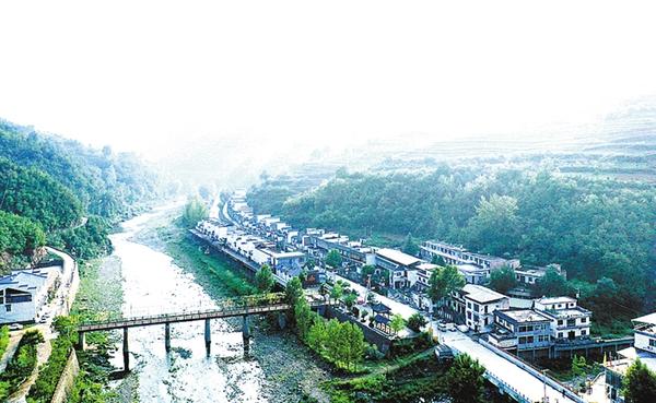 这是8月3日拍摄的河南省洛阳市嵩县黄庄乡三合村(无人机照片)。 河南省洛阳市嵩县黄庄乡三合村位于伏牛山区,山水资源和原生态古村落吸引了许多艺术家和美术爱好者。在当地政府支持和返乡青年冯亚珂带动下,三合村通过修缮老房、新建民宿,改善了基础设施,引来数十家画室签约合作,逐渐成了写生专业村。新华社发