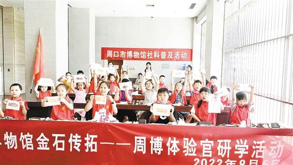 8月6日上午,在市博物馆三楼,30多名学生参加了“道德名城、魅力周口”周博“文化筑梦”研学体验营金石传拓活动,近距离接触拓片这项古老技艺,了解中华传统技艺丰厚的文化底蕴。 记者 黄佳 摄