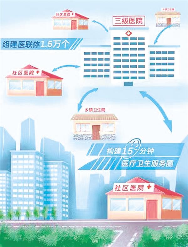 组建医联体1.5万个,开展的7批集采中选药品平均降价超50%,住院和普通门诊费用跨省直接结算实现统筹地区全覆盖……这十年,围绕看病难、看病贵等问题,我国推出一系列改革举措,补短板、强基层、建机制,让看病就医更方便、更实惠、更顺畅。这正是: