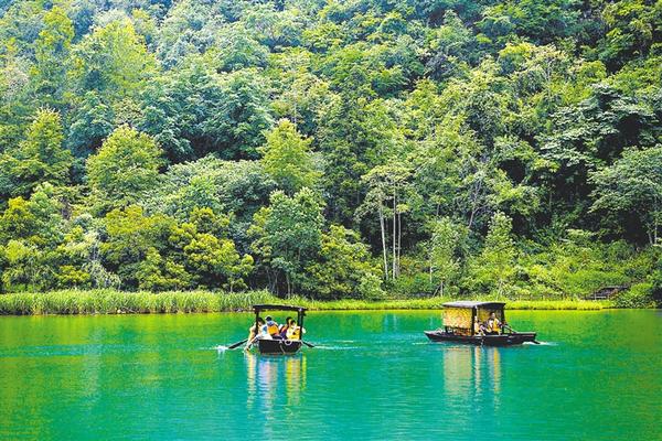 8月6日,游客在贵州省荔波县小七孔景区游览。 暑假期间,众多游客来到贵州省荔波县,畅游青山绿水,感受世界自然遗产地之美。今年以来,荔波县各景区相继推出多项促进旅游消费政策,在做好疫情防控的同时,助力旅游市场逐步复苏。新华社记者 杨文斌 摄