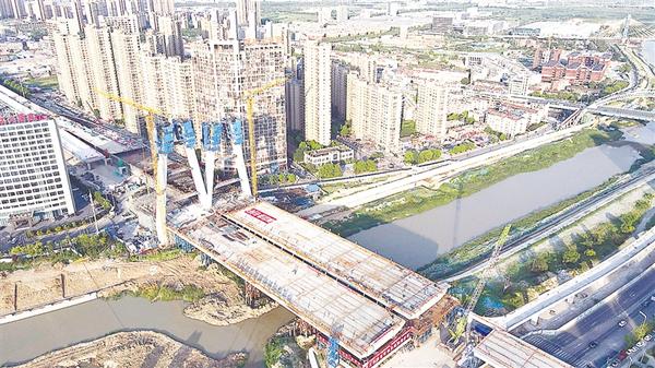 这是主桥贯通后的引江济淮金寨南路桥(8月7日摄,无人机照片)。 当日,由中铁四局承建的引江济淮工程江淮沟通段金寨南路桥主桥贯通。 新华社记者 刘军喜 摄