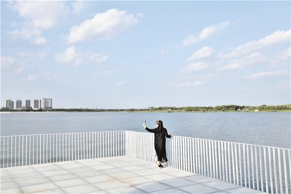 近年来,我市以创建全国文明城市为抓手,加大中心城区水系综合治理,实现河畅、湖清、水净、岸绿、景美,让城市因清流碧水而风景秀美、生态宜居。图为昨日市民在市城乡一体化示范区引黄调蓄湖边纳凉。记者 付永奇 摄