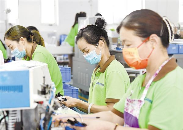 昨日,河南凯旺电子科技股份有限公司几名工人正在紧张有序地忙碌着。该公司是一家返乡创业的高新技 术企业,专注于电子精密线缆连接组件的研发、生产和销售。目前已与中兴、浙江大华、海康威视等上市公司签订常年供货合同,实现年产值2亿元,利润3000万元,安排就业人员1300人。③19