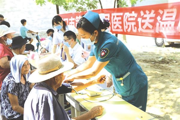 8月5日上午,周口市第一人民医院义诊团队到黄集乡黄德寺行政村开展义诊活动。本次活动共服务群众160余人次,赠送药品价值2000余元,派发疾病防治宣传资料1000余份。 记者 侯俊豫 通讯员 苏叶松 摄
