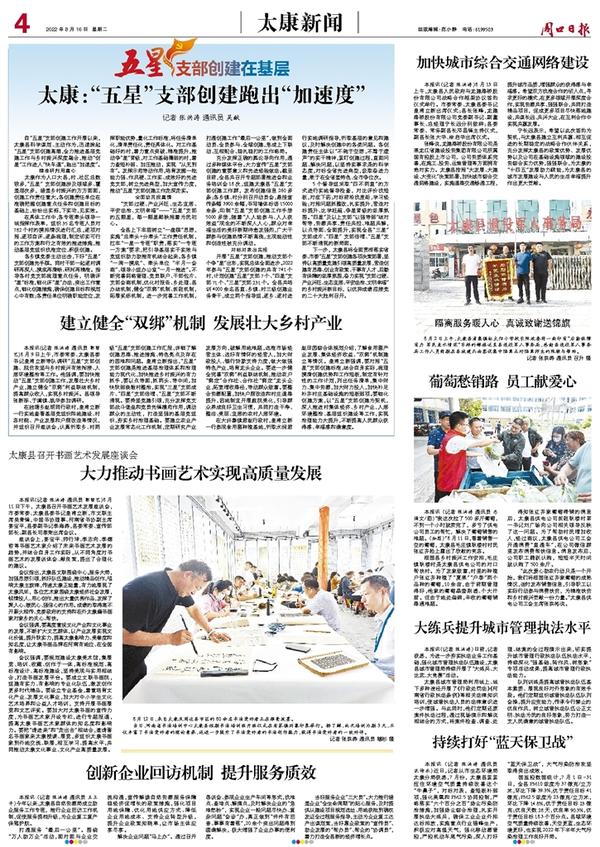 下一步,太康县将全面贯彻落实省委、市委“五星”支部创建各项决策部署,坚持以高质量党建引领高质量发展,营造创建有思路、创业有政策、干事有人才、后勤有保障的浓厚氛围,奋力实现“支部过硬、产业兴旺、生态宜居、平安法治、文明幸福”的乡村振兴新目标,以优异成绩迎接党的二十大胜利召开。