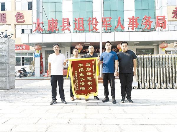 8月2日上午,太康县清集镇红太阳小学校长陈政委将一面印有“后勤保障有力 军民鱼水情深”字样的锦旗送至县退役军人事务局,感谢县退役军人事务局工作人员前期在县城建北尚客优集中隔离点对隔离师生的照顾与帮助。 记者 张洪涛 通讯员 召升 摄