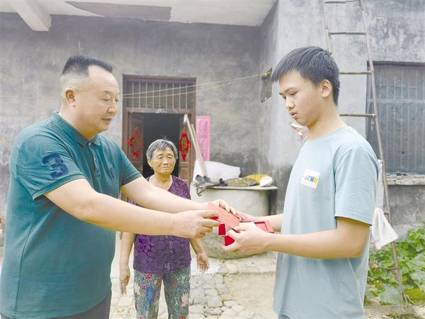 8月16日,区民政和退役军人事务局局长曾兴、许湾街道办事处副主任曹林兵和李伟一起来到李阳家,为他送去5000元现金。“李阳的情况符合事实无人抚养儿童助学标准,按照相关规定,他可以享受每个月1050元的补贴,能够很大程度上缓解他家的实际困难。如果后期需要帮助,我们也可以根据实际情况,再为他申请其他救助。”曾兴说。