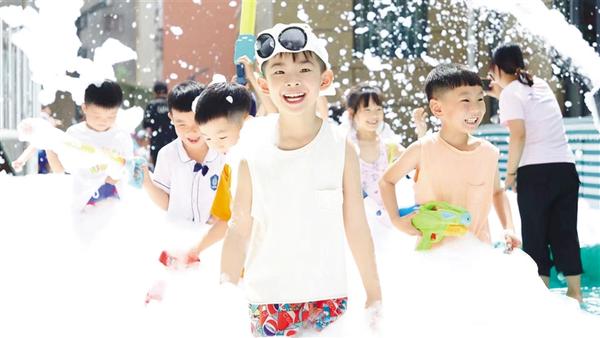 炎炎夏日,项城市一家幼儿园为孩子们举办了“泡沫之夏,水上狂欢”活动。看到泡沫机喷吐出洁白的泡泡,孩子们高兴极了,一头钻进泡泡中,你追我赶,尽情嬉戏。记者 张志新 通讯员 张鑫 摄