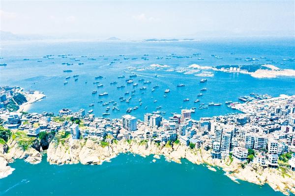 8月16日,福建省福州市连江县苔菉中心渔港开渔出海的渔船在海面航行(无人机照片)。