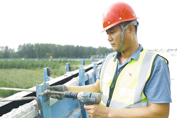 党员施工员在全市重点工程国道106淮阳区沙窝至祝寨段改建工地施工