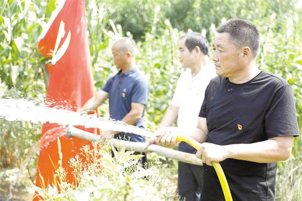 开发区淮河路办事处党员干部正在为因疫情无法返乡群众抗旱灌溉