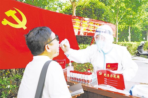 周口市第六人民医院党员医生在铁路家园小区开展核酸检测采样工作